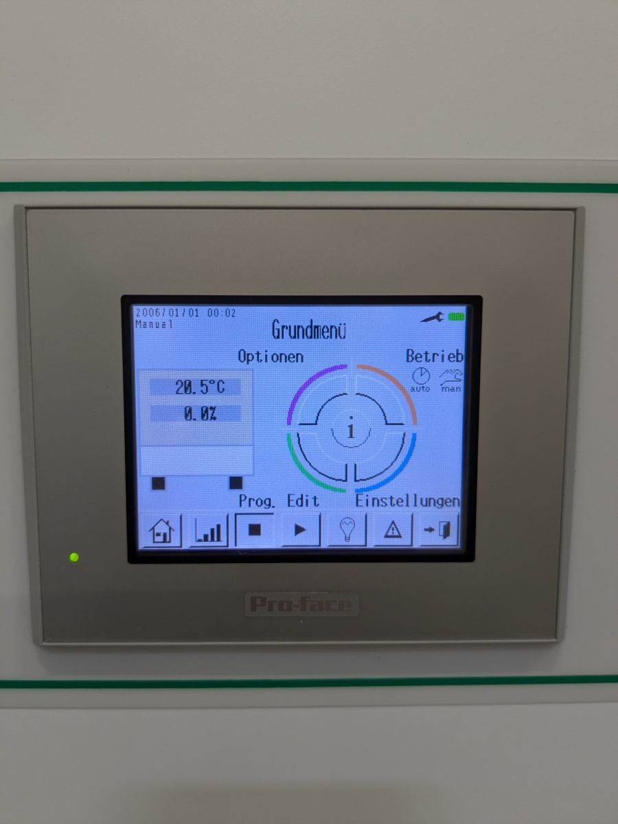 Feuchtigkeit: Optional ist eine Befeuchtung bis zu 80 % r.F. (relative
